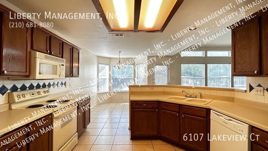 MOVE IN SPECIAL: 2 WEEKS FREE!* Nice 3 Bed. 2.5 Bath Home in Gated Community on Cul-de-sac. All Vinyl Plank Flooring and Tile. No Carpets except Stairs. Living Room with 15 ft Ceiling, Gas Fireplace. Kitchen with Breakfast Bar, Stove, Microwave, Dishwasher. All Bedrooms Upstairs. Primary Bedroom with Ceiling Fan, Walk-in Closet. Primary Bath with Separate Shower/Garden Tub, Dual Sinks. Fenced Yard on Greenbelt (no back neighbor) and Large Patio for BBQs, entertaining. 2 Car Garage with Opener. Community Playground, Basketball. Closet to Medical Center, 1604, IH-10.